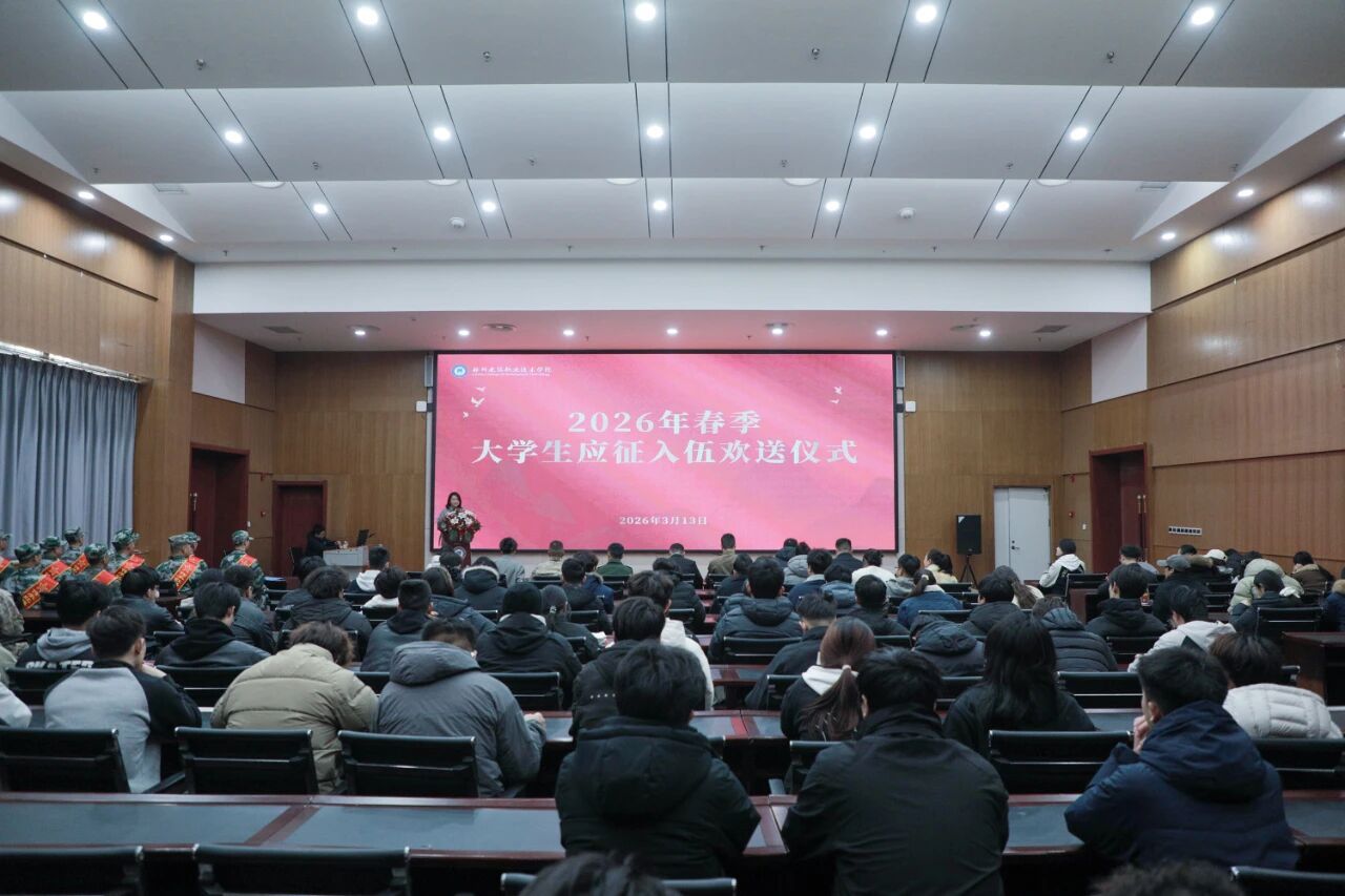 3月13日上午,林州建筑职业技术学院2026年春季大学生应征入伍欢送仪式在行政楼一楼报告厅隆重举行。林州市人武部政...
