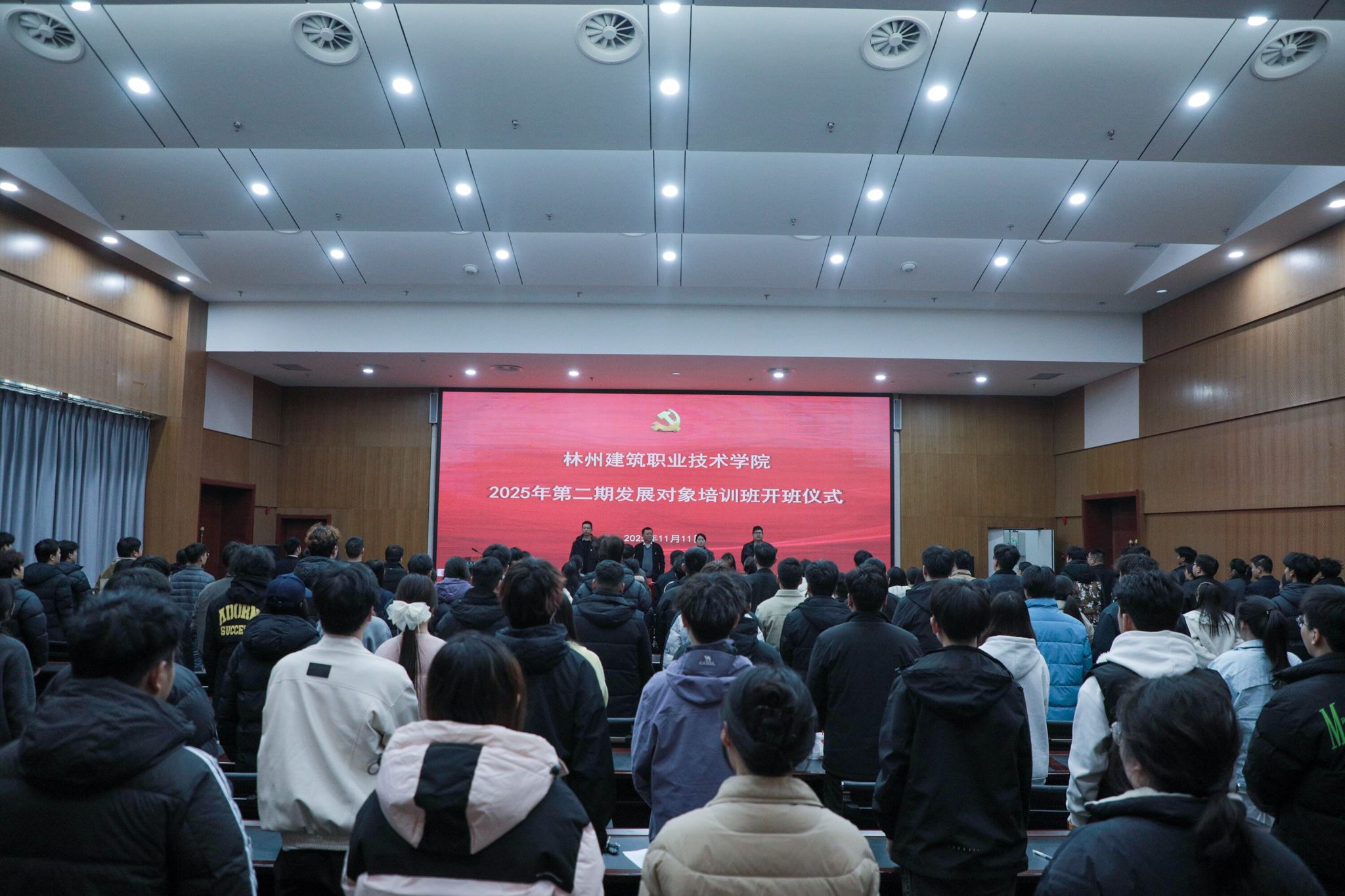 为深入学习贯彻习近平新时代中国特色社会主义思想,加强党员队伍建设,严把党员发展“入口关”,切实提高党员发展对象的政治素养、理论水平和党性修养,11月12日下午,林州建筑职业技术学院2025年第二期党员发展对象培训班开班仪式在行政楼106多功能报告厅隆重举行,学校党委副书记、副校长郭鹏出席仪式,党务工作部全体人员,各党支部书记、委员、组织员,在校党员代表以及党员发展对象培训班全体学员参加开班仪式。开班仪式由党委组织部部长申振苹主持。