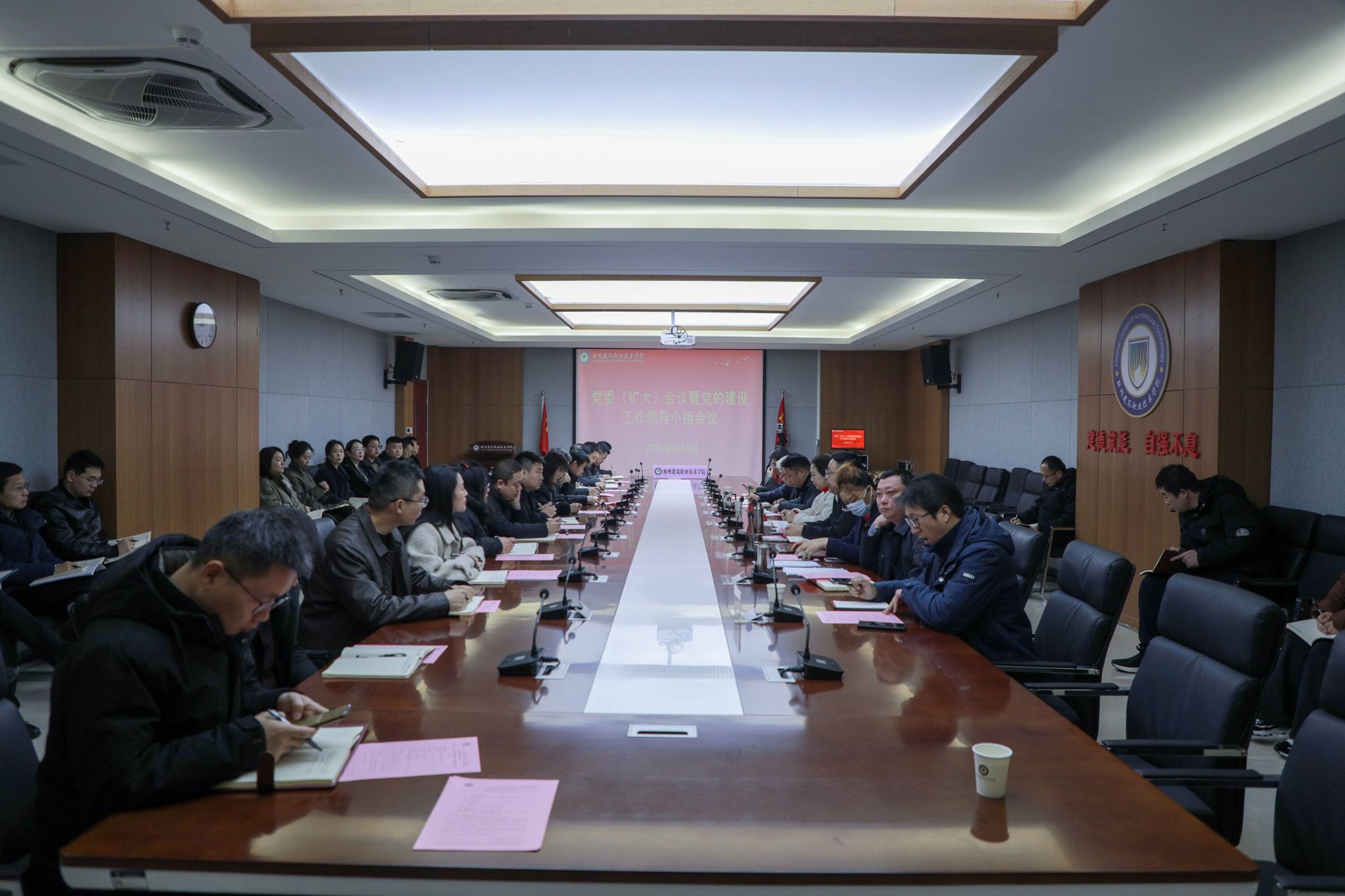 为深入贯彻落实党中央关于树立和践行正确政绩观学习教育的决策部署,全面对标对表教育部党组及省、市相关工作要求,3月4日上午,林州建筑职业技术学院召开党委(扩大)会议暨学校党的建设工作领导小组会议,系统部署全校树立和践行正确政绩观学习教育工作,凝聚办学治校合力。全体校领导班子成员、全体中层干部及各党总支书记参会,校长张清华主持会议。