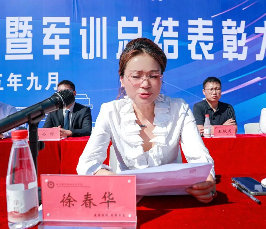 副校长徐春华宣读《林州建筑职业技术学院关于表彰2025级新生军训先进集体和先进个人的决定》
