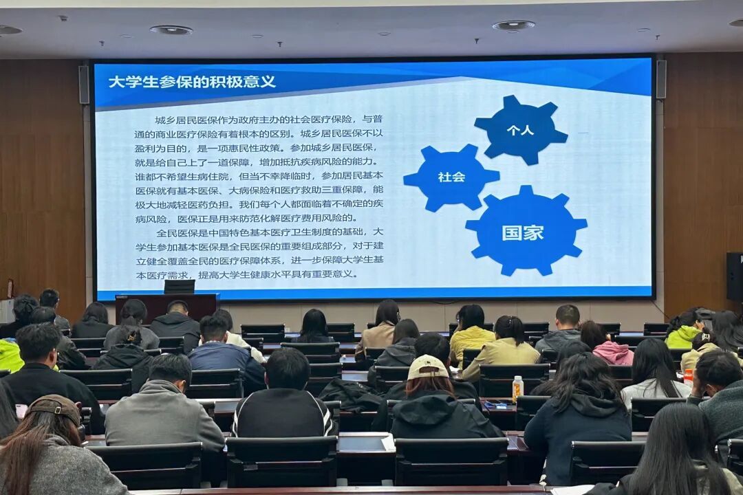 会上,林州市医疗保障局工作人员为我校全体辅导员和学生代表详细解读了2025年度大学生居民医保政策,包括参保缴费标准、政府补助情况、医保待遇享受范围、门诊及住院报销流程、异地就医备案手续、报销所需材料及注意事项等师生普遍关切的核心内容。讲解结束后,医保局工作人员与辅导员们就工作中遇到的具体问题、学生常见的疑惑以及往年报销中的典型案例进行了深入的现场交流和答疑,会场气氛热烈。学生工作部部长李帅在会议中强调,大学生参保工作是涉及每位学生切身利益的民生工程、暖心工程。各学院要进一步提高政治站位,强化思想认识,深刻理解此项工作对保障学生健康、减轻家庭负担的重要意义。要将参保好处、报销流程等政策要点“点对点”传达给每一位学生,确保人人知晓、理解透彻。要明确工作目标,压实责任,加强组织动员,积极引导学生自愿参保、应保尽保,力争推进我校大学生参保工作取得新进展、新成效。