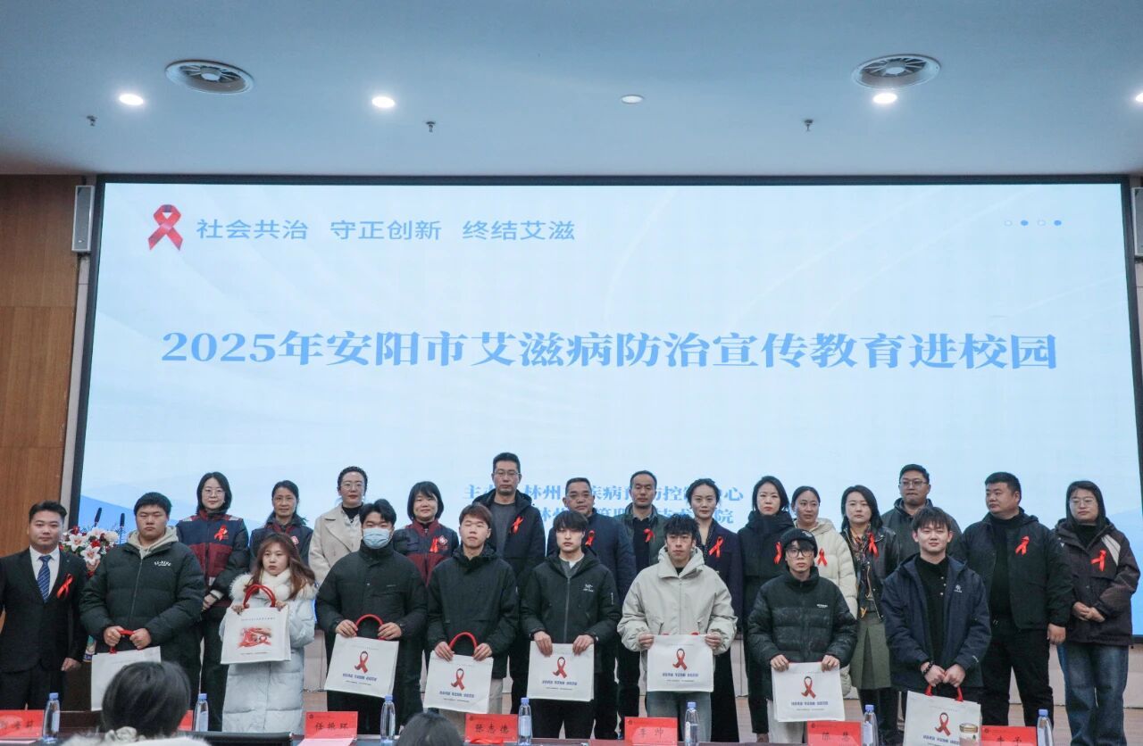 为切实筑牢校园健康防线,有效提升青年学生艾滋病防治意识和自我保护能力,12月4日上午,安阳市艾滋病防治宣传教育进校园活动在我校隆重举行。林州市疾控中心主任张志德、副主任任振环,安阳市疾控中心性病艾滋病科副科长陈慧,河南护理职业学院临床医学系副主任江雷振,我校学生工作部部长李帅、副部长牛予出席活动。学生工作部各部门负责人、各学院学管副院长、分团委书记、全体辅导员及学生代表参加活动。