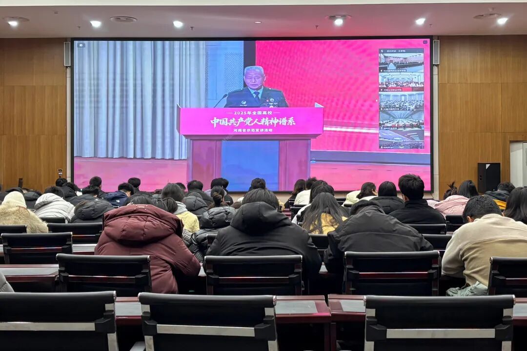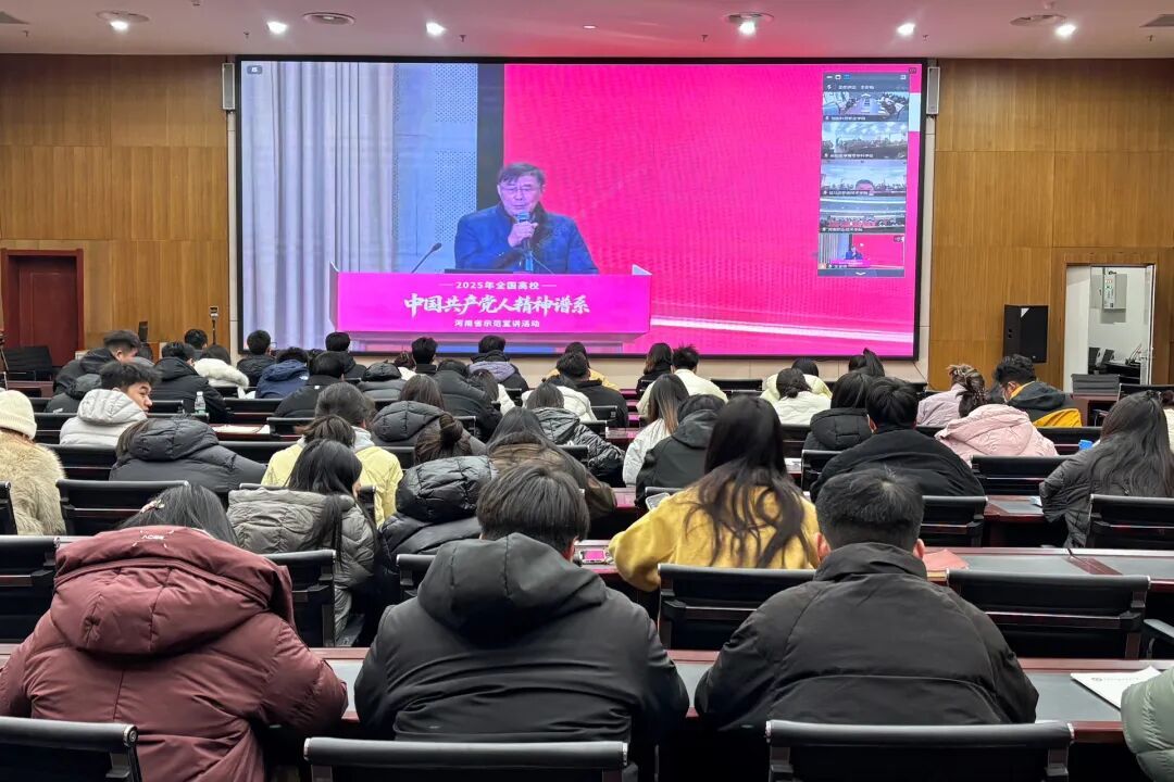 为深入学习贯彻党的二十届四中全会精神,落实立德树人根本任务,引导青年学生坚定马克思主义信仰、中国特色社会主义信念,根据省委教育工委、省教育厅要求,12月3日上午,我校在行政楼报告厅设立分会场,组织各学院辅导员、马克思主义学院教师及学生代表集中观看了2025年全国高校“中国共产党人精神谱系”河南省集中示范宣讲活动。本次宣讲活动由华东师范大学教授、全国中共党史学会理事齐卫平和全国模范退役军人、全国老兵宣讲团成员许玉亭担任主讲。